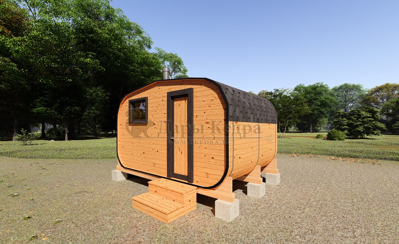 Овальная-Окта баня-бочка из кедра просторная и вместительная. Имеет два отделения: раздевалку, которую можно использовать как комнату отдыха, и парилку. Для удобства пользования раздевалка оснащена лавочкой, полкой и вешалкой из кедра. В парильном отделении располагается печь и двухуровневый открытый полок. Для установки такой модели не требуется полноценный фундамент, поэтому при необходимости ее можно перенести на другое место. Так же баню-бочку можно укомплектовать верандой со скамейками, козырьком и печью с внешней загрузкой, благодаря которой весь мусор после топки останется на улице.